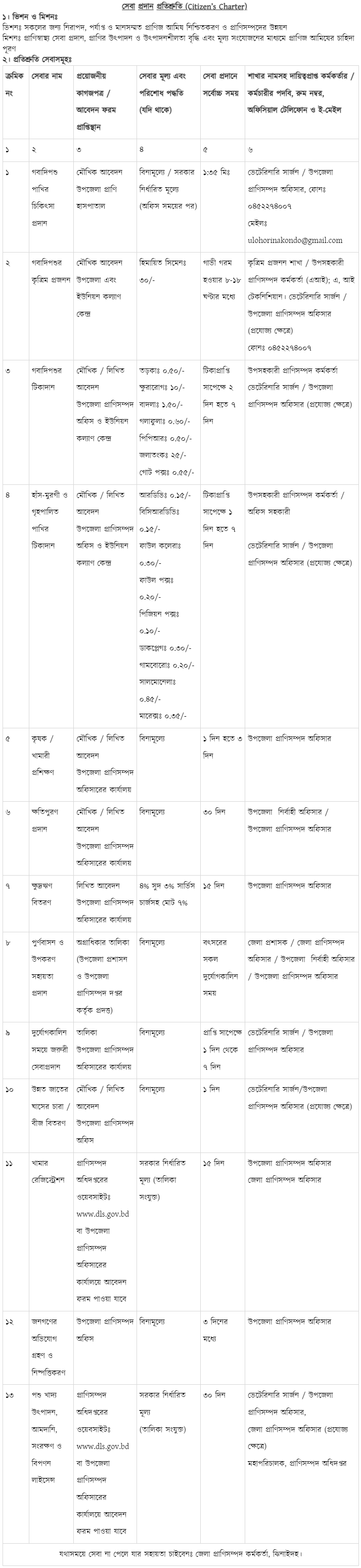 ১। ইউ এল ও বিভাগীয় সকল কার্যক্রম পরিচালনা
